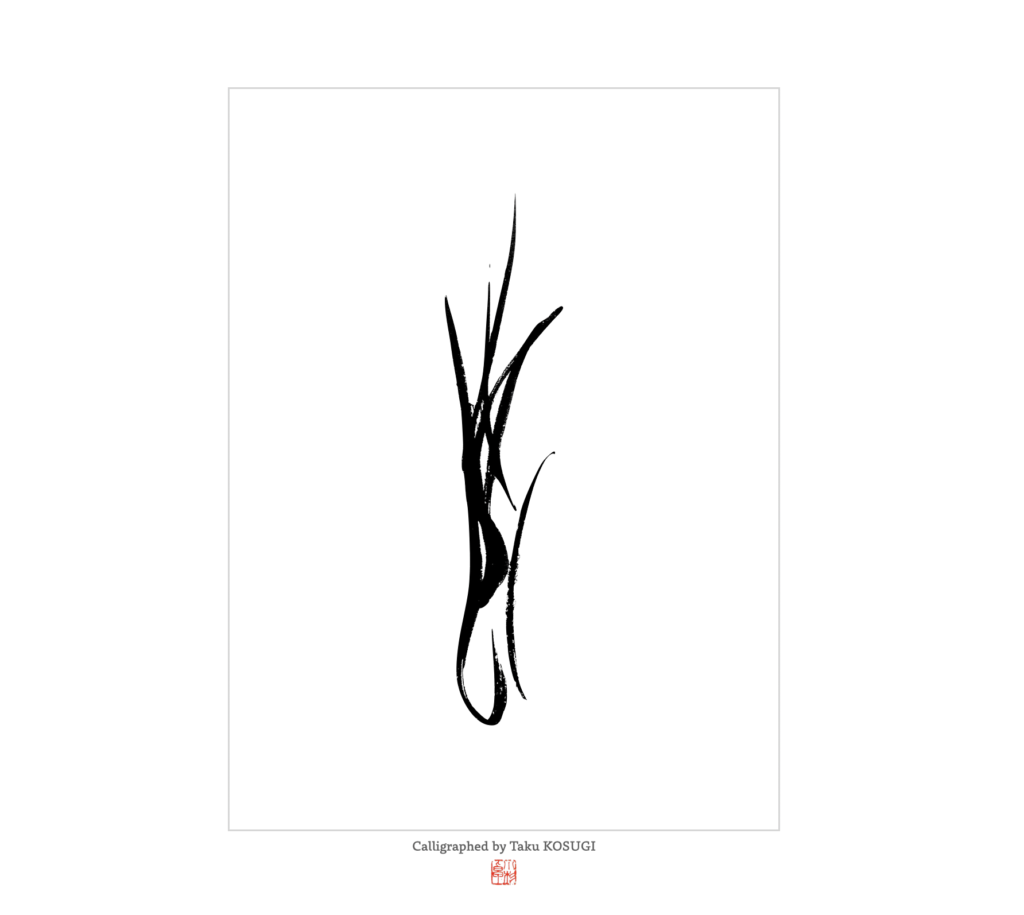 ふだん僕たちが無意識に受け入れている「効率的な書き順」を一度クローゼットの奥にしまい込み、ものそのものが立ち上がっていくプロセスを追体験しようとした。芽が土を割り、空の青さを目指して伸びていく。その「上昇の感覚」を、筆の運びにそのまま重ねてみる。